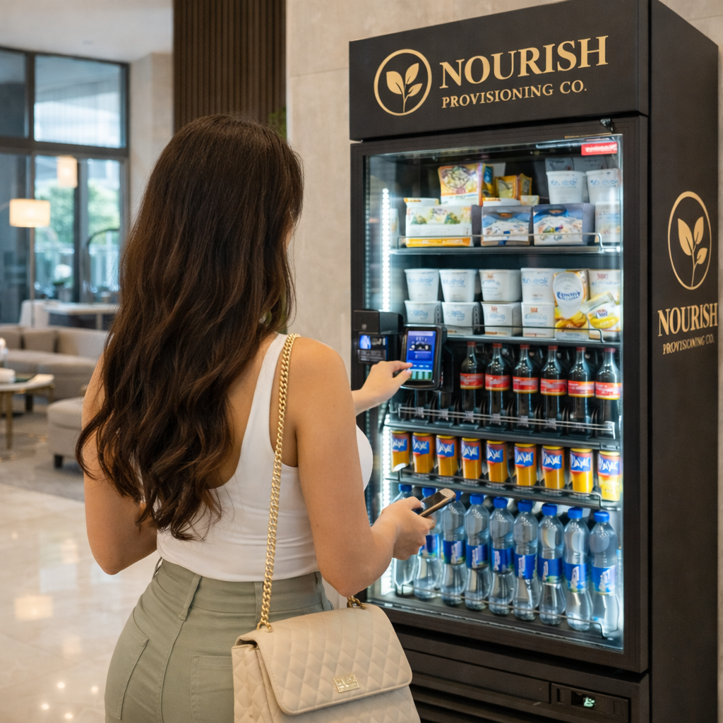 Nourish Provisioning Co. brings intelligent, self-service markets into the spaces people live, work, and move—delivering 24/7 access to everyday essentials, better-for-you snacks, beverages, and thoughtfully curated conveniences.